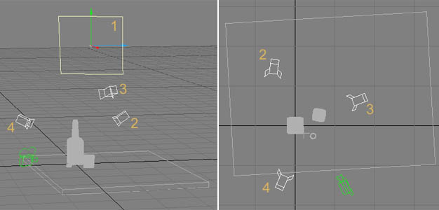 I wanted to have the window to the left and slightly to the back, because in this location/area I would place my main light and so the caustics would be clearly visible, not hidden by the geometry. Using a Bank rotation on the camera adds drama to the scene. The camera lens was set relatively low at 21,3 mm (on a 35mm motion picture camera) to implie a sense of dynamics (higher lens settings tend to look "static"). I'm a big fan of low lens settings :-) |